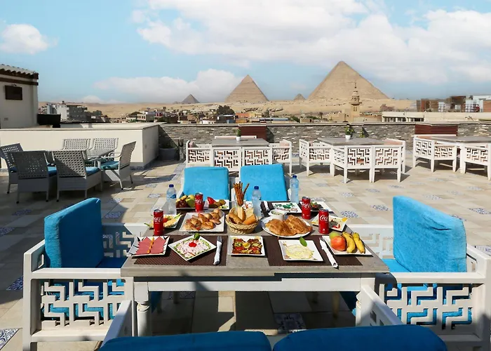 يقع Pyramid Edge Hotel & Exclusive Pyramids View Rooftop Kafret el-Gabal في منطقة الجيزة في Kafret el-Gabal على مسافة 0.8 كم فقط من معبد ابو الهول ويضمّ 25 غرفة مطلة على المدينة. يمكن للضيوف الاستمتاع بالبار في الشرفة بالإضافة إلى الجاكوزي والحوض الساخن، على مسافة قريبة من تمثال أبو الهول بالجيزة.
